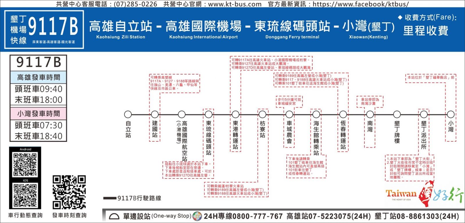 時(shí)刻表請(qǐng)至高墾線共營(yíng)中心查詢https://service.kt-bus.com/index.php/fares-and-timetables/