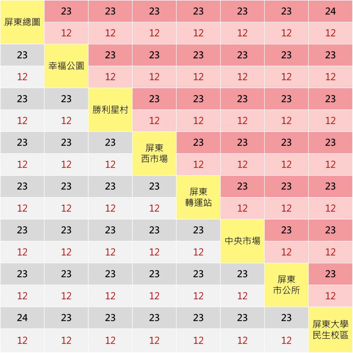 上方為電子票證付費,下方為現(xiàn)金付費;黑色粗體為全票,紅色細(xì)體為半票